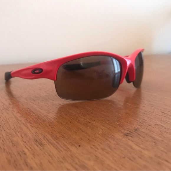 Pink sunglasses from oakley. Perfect for bike rides or running. The lenses can be change easily. They are in a really good shape. Just a tiny scratch on the lense but doesnt bother the view.