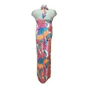 Oasis Maxi Dress Pullover Halter Tie Neck Abstract Colorful Spring