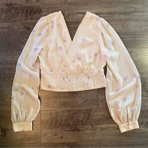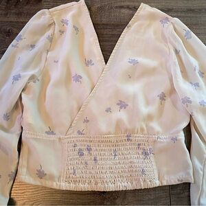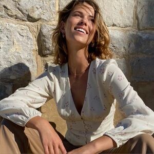 Oat + Fort blouse Long Sleeve V neck floral Blouse empire waist