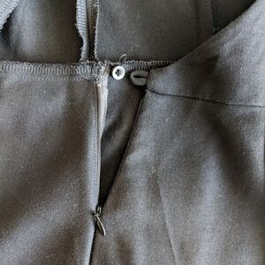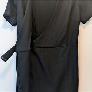 Black short sleeve structured wrap dress with assymetrical hem line. I can't speak highly enough about the construction & quality.