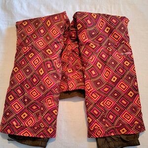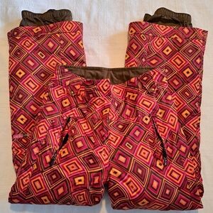 Obermeyer girls size 12 snow pants, diamond pattern orange, red & brown