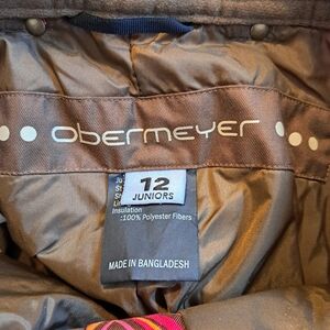 Obermeyer girls size 12 snow pants, diamond pattern orange, red & brown, leg extenders still intact, I have a matching jacket but different size, elastics & zippers in good working order, EUC