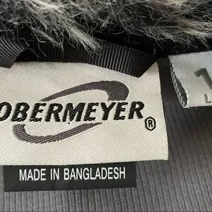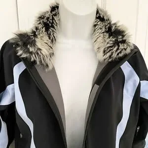 Elastic drawstring around hem and removable faux fur around neck.