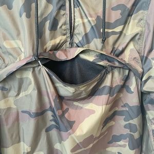 Obey windbreaker material lined with fleece. Includes front pock and hood. Adjustable waist-string and hood. Barely worn, great condition. Appropriate for any gender.