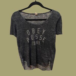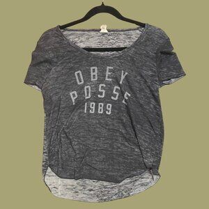 Obey Posse 1989 Vintage Graphic Tee – Distressed Charcoal Black (Size S)