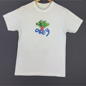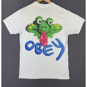 Obey Skate Streetwear Frog Art Tongue Spellout White Shirt Small Hype Rare Tee