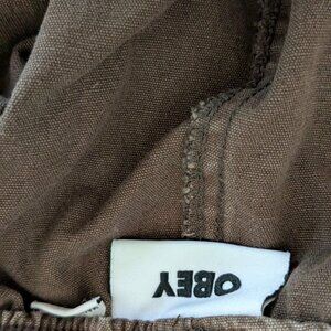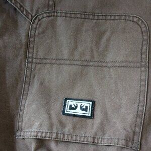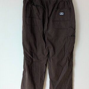 Brown carpenter double knee pants with adjustable waistband (Men's M). The pants have faded to an orangish hue on the front of the legs due to sun exposure, giving them a unique look. I'm selling because this style isn't my thing, but someone might love the vintage vibe. Pants are in good condition otherwise. No issues, just looking for a new home!
