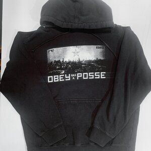 Obey has a posse Vintage Men's Pullover Sweater Medium Hoodie Drawstring Y2K