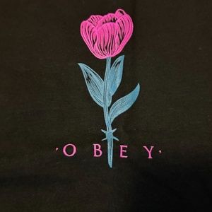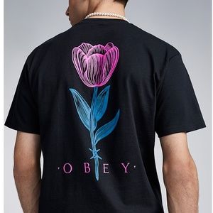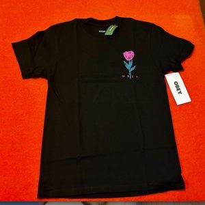 Obey unisex black, blue and pink Barbwire rose 100% cotton tee NWT