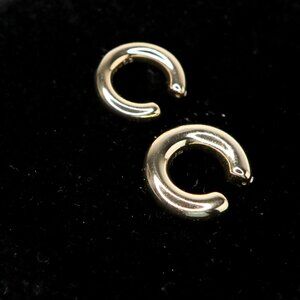 Add a touch of effortless style with this set of two Obidos ear cuffs! Perfect for achieving a trendy stacked ear look without the commitment of a new piercing. This set features two different sizes, each with a delicate mini cubic zirconia on the ends, offering a hint of sparkle. In great, gently used condition with minor signs of wear, these cuffs look like new. Wear them together on one ear for a bold look or on separate ears for a minimalist vibe. A chic and modern addition to your accessory collection.