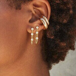 Obidos 14k Gold Plate Zirconia Ear Cuffs Set - No Piercing Layering Stacking