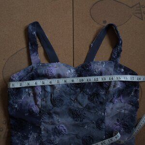 Embrace elegance with this stunning three-piece purple set from Obsessions Couture. Made in Canada, this ensemble features exquisite rosette details that add a touch of sophistication and charm. Perfect for formal events or special occasions, the set includes a tank top, skirt, and matching jacket, all crafted from high-quality fabrics for a comfortable and flattering fit. The luxurious purple hue enhances its timeless appeal. The set is in excellent used condition, showing minimal signs of wear and maintaining its original beauty. All pieces are lined