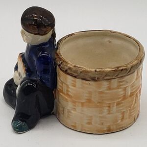 -Wonderfully vintage and hand painted Japanese man sitting in front of large basket planter made of porcelain