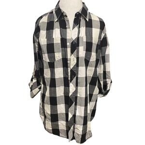 Ocean Current Buffalo Plaid Long-Sleeve Shirt in black and white. 100% Cotton.