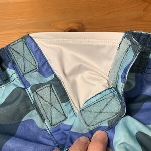 The interior has a layer of netting throughout. These also have waist ties. The shorts have Velcro closures at the front as well as a piece of fabric for privacy and comfort.
