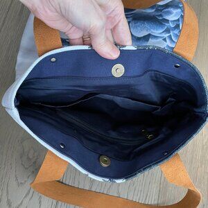 Ocean Shore Landscape Lined Textile Tote Bag w Magnetic Closure Blue Sz OS NWOT