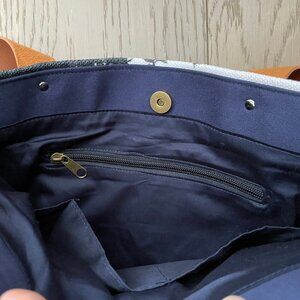 Ocean Shore Landscape Lined Textile Tote Bag w Synthetic Straps & Magnetic Closure in Blue Cream Gray NWOT - no brand or fabric tag