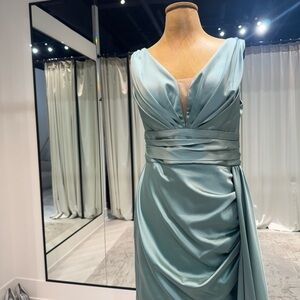 Step into elegance with this stunning teal evening dress. Perfect for any special occasion!! The gown is BRAND NEW—this is the large size, medium and large is available!