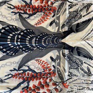 Ocean Themed 70" x 37" Silk & Viscose Scarf/Wrap Made in P.R.C. Multi Color Yellow Wht Blk Navy Gray Orangy Red