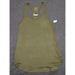 Ocean Tropics Sleeveless Beach Tank Top Shirt Olive Green Medium Rayon Blend