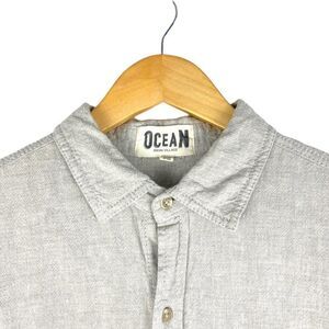 Ocean bikini Village Men's Beige Linen Blend Button Up Short Sleeve Shirt US M
