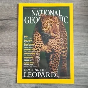 October 2001 edition featuring the topics of Light, Rain Forest, China Tombs, Volcanoes, Leakey, Leopards, Swahili Coast, Adjuncts, PR.