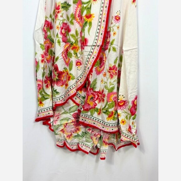 The White Floral Summer Dress is a breezy and feminine sundress designed for warm days and casual gatherings. Crafted in a lightweight printed woven fabric, it features an off-shoulder neckline, flutter sleeves, and a smocked bodice for a comfortable, flattering fit. The faux wrap skirt flows into a hi-lo hem, adding effortless movement and charm.