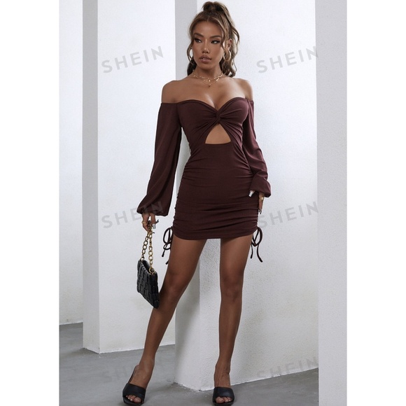 Shein Off Shoulder Ruched Drawstring Dress