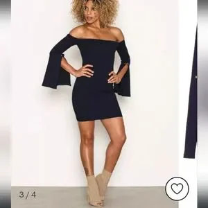 NWT I Saw It First UK Brand Navy navu black/blue bodycon mini dress, solid color, soft feel fabric, elastic shoulder