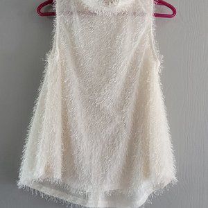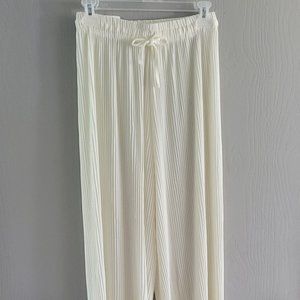 Step into elegance with this off-white two-piece set featuring a sleeveless top and matching pants. The top is adorned with a unique textured design, offering both style and comfort. The softly pleated pants have sparkles . Perfect for casual gatherings or chic outings, this ensemble provides a versatile and sophisticated look. Pair it with your favorite accessories to complete the outfit.