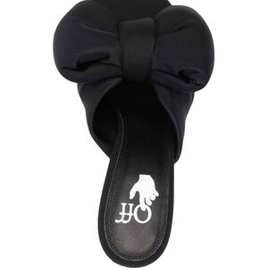 Black leather Off White bow-detail Allen Mules. I have only worn them 2 times,. They are in almost new condition with slight wear on the bottoms. They are surprisingly comfortable and a great statement piece for your outfit.