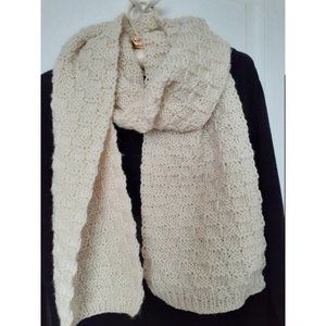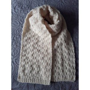 Handmade,stylish knitted scarf , colour off white, 100% acrylic , vegan friendly ,long 70" x 9", unisex winter scarf, Great for cold weather.