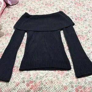 Stay stylish and warm with this elegant black off-shoulder sweater. Perfect for any occasion.