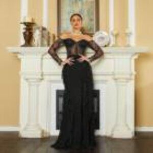 size 4, bust 82, hip 94, length 146cm and waist 66