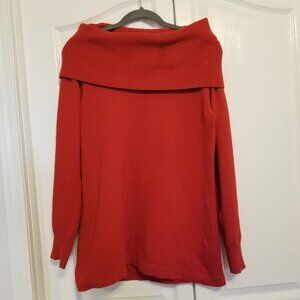 Off the Shoulder Red Knit Long Sleeve Sweater Top French Connection Women XL