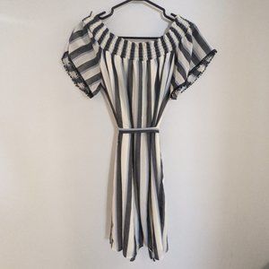 Dex Midi Striped Off the Shoulder Dress with separate belt. Perfect for summer!