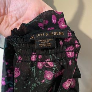 Off the shoulder, pretty sheer, loose fit, floral print, lightweight, only stretchy around the top.