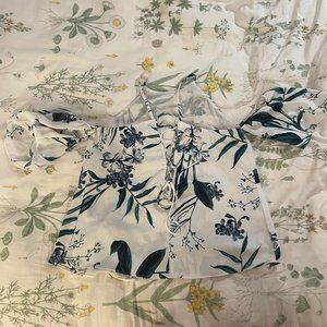 Off the shoulder tropical white and green blouse with bell sleeves!