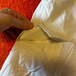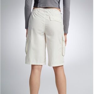 Off white cotton cargo parachute Bermuda short new with tags. Stretch cotton fabric, adjustable toggle elastic waist, fastening flap pockets. Marked sized S but could also fit M or even L because the waist is elasticated. All measurements are approximate and taken with the garment laying flat: Waist 14" (it stretches up to 16’’-17’’) Front rise 10" Inseam 13" This item comes from a smoke free, pets friendly home. Recycled bags/box used when possible. Please, let me know if you'd like any additional info. Thanks for watching!