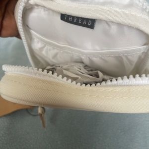 Off white white. Thread wallet handbag . Cross body bag. Branded Woven jacquard strap