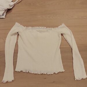 Stylish off-shoulder ribbed top in cream. Perfect for casual outings.