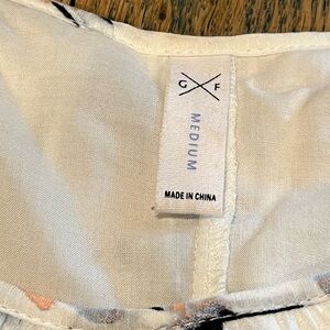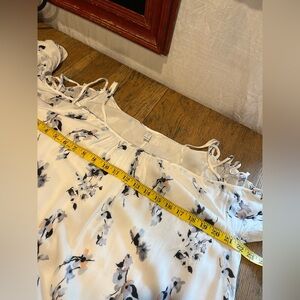 💐 Lightweight white blouse with delicate blue and peach floral print.