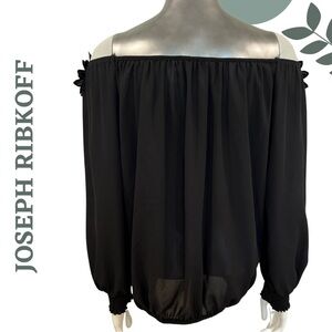 Off-Shoulder Joseph Ribkoff Top with 3D Floral Detail | Long Sleeve | Size 4