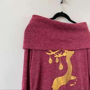 Off-Shoulder Reindeer Gold Christmas Sweater