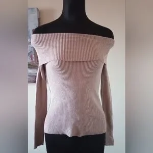 Stay stylish and comfortable with this off-shoulder ribbed sweater. Perfect for any occasion, this pink sweater adds a touch of elegance to your wardrobe.