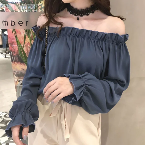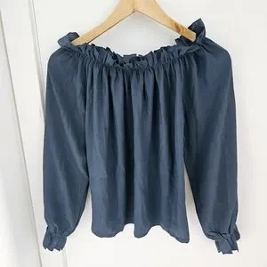 Features: - Off-shoulder blouse - Loose and lightweight - Elastic construction that fit size S or M - Color: Blue - 100% Polyester