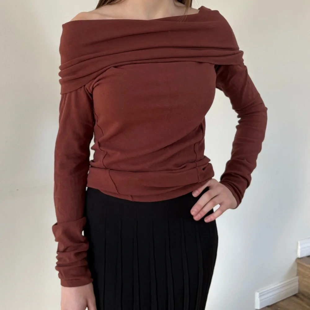 Free People off-shoulder top in a rich rust color. Perfect for casual outings. It’s buttery and beautiful.