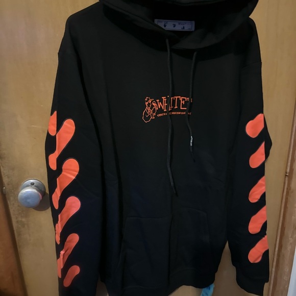 Bold black sweater with striking orange accents. Features signature Off-White design. Perfect for casual wear.
