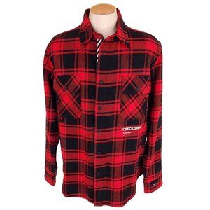 Off-White Flannel Quote Shirt Size L Mens Red Black Check Virgil Abloh