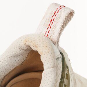 These low-top Odsy-1000 sneakers in the 'White Light Grey' colourway from Off-White are crafted in a mix of White leather, suede, and mesh on the upper; and feature closed rounded toes, front lace-up fastening, arrow appliques on the sides, rubber straps in Light Grey, pull tabs on the back, mesh and fabric lining, and chunky rubber outsoles.